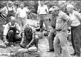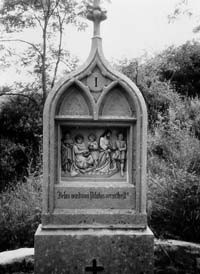 Anfang des Jahres 1990 nahmen wir uns vor, mit der Restaurierung des Weges zu beginnen und verschafften uns zunächst einen Überblick über die vorhandene Situation. Der desolate Zustand des Weges und drei zwischenzeitlich zerbrochene Stationsgehäuse veranlassten uns, mit der Instandsetzung sofort zu beginnen. Die zerbrochenen Stationen wurden nach Eibelstadt in einen Steinmetzbetrieb zur Reparatur gebracht. Die Kosten hierfür in Höhe von DM 1.200,-- übernahm nach einem entsprechenden Vorstandsbeschluss der Verein. Ab dem 08. Mai 1990 begannen wir mit den Arbeiten. An fast allen Werktagen wurde – wenn es die Witterung zuließ – von 5 bis 9 Personen an der Wiederherstellung des Weges und der Stationen gearbeitet. Die aus drei Teilen bestehenden Gehäuse wurden abgebaut, mit einem neuen Fundament versehen und dann mit einer Nischenförmigen Mauer gegen den Hang hin geschützt. Als nach einigen Arbeitstagen das gute Ergebnis und der Fortschritt sichtbar war, wurde manchmal auch Samstags gearbeitet. Die Arbeit machte allen Beteiligten zunehmend mehr Freude.